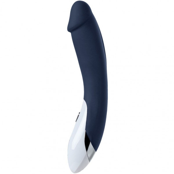 Выпол­нен виб­ра­тор в синем цвете из медицин­ского пла­ти­но­вого сили­кона. Изящ­ная форма виб­ра­тора со слегка изогну­той и уве­ли­чен­ной голов­кой поз­во­лит задейство­вать по мак­симуму самую глав­ную жен­скую точку - точку G!